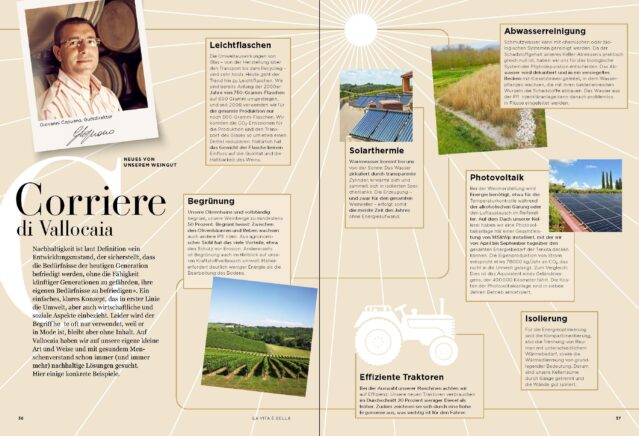 Design: Das Magazin «La vita è bella» soll einladen; sein Gestaltungskonzept – basierend auf dem CI/CD der Marke Bindella – hat einen hohen Wiedererkennungswert. Der rhythmische Wechsel von grosszügigen und von kleinteiligen Artikeln sorgt für Dramaturgie. Orientierung bieten die Rubrikenstruktur und der klare Aufbau der verschiedenen Artikel und Gefässe in einem variablen Layoutraster. Hefteinstiege für QuerleserInnen bieten sich in jedem Artikel.