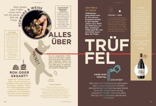So muss ein Genussmagazin aufgebaut sein: klar gegliedert und rubriziert, nicht zu anstrengend gestaltet, leicht konsumierbar, ansprechende Bildsprache, viel nützliches Wissen und appetitmachender Look!